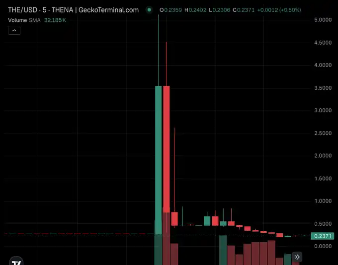 结果也没有意外:清算结束后,THE 价格一路回落到 $0.24 左右,甚至 低于攻击前价格,因为原持有者也过程中进行了。