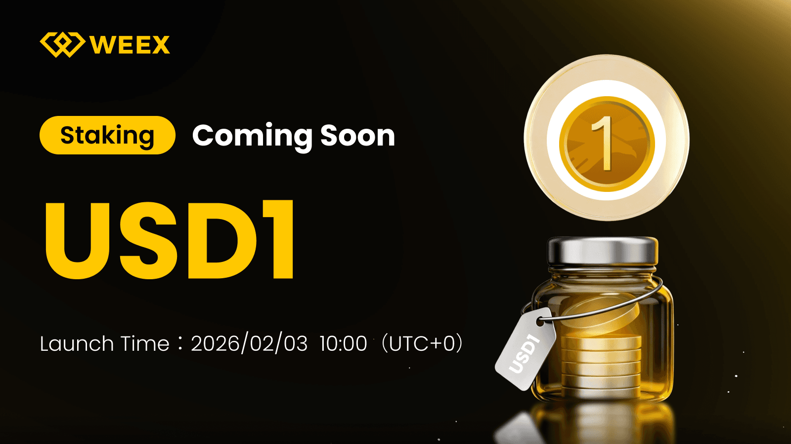 WEEX lanzará oficialmente USD1Staking el 2026/02/03 10:00 UTC+0 .