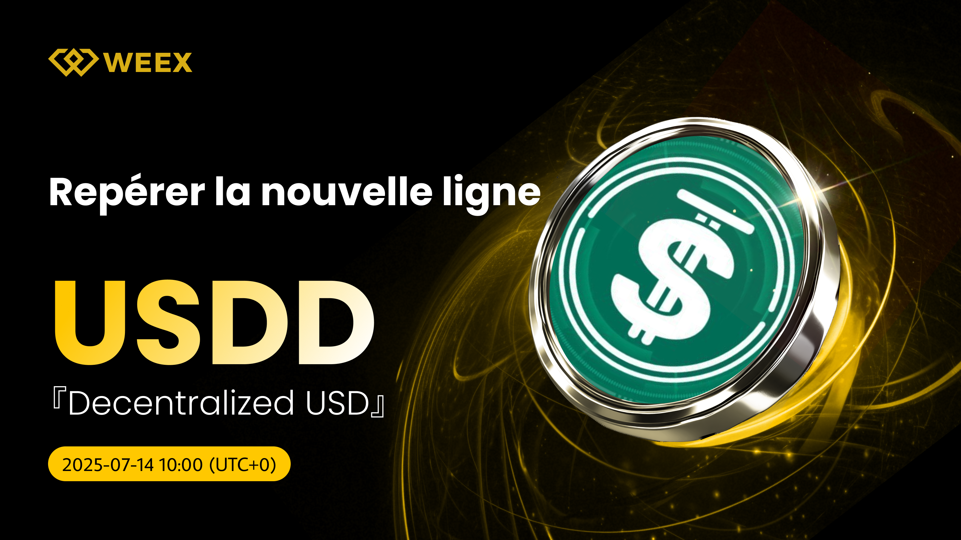 Nous avons le plaisir de vous annoncer que Decentralized USD (USDD) est désormais officiellement disponible sur le trading au comptant WEEX ! À partir du 14 juillet 2025, 10h00 (UTC+0), vous pourrez facilement échanger USDD/USDT sur la plateforme WEEX. Les détails sont les suivants :