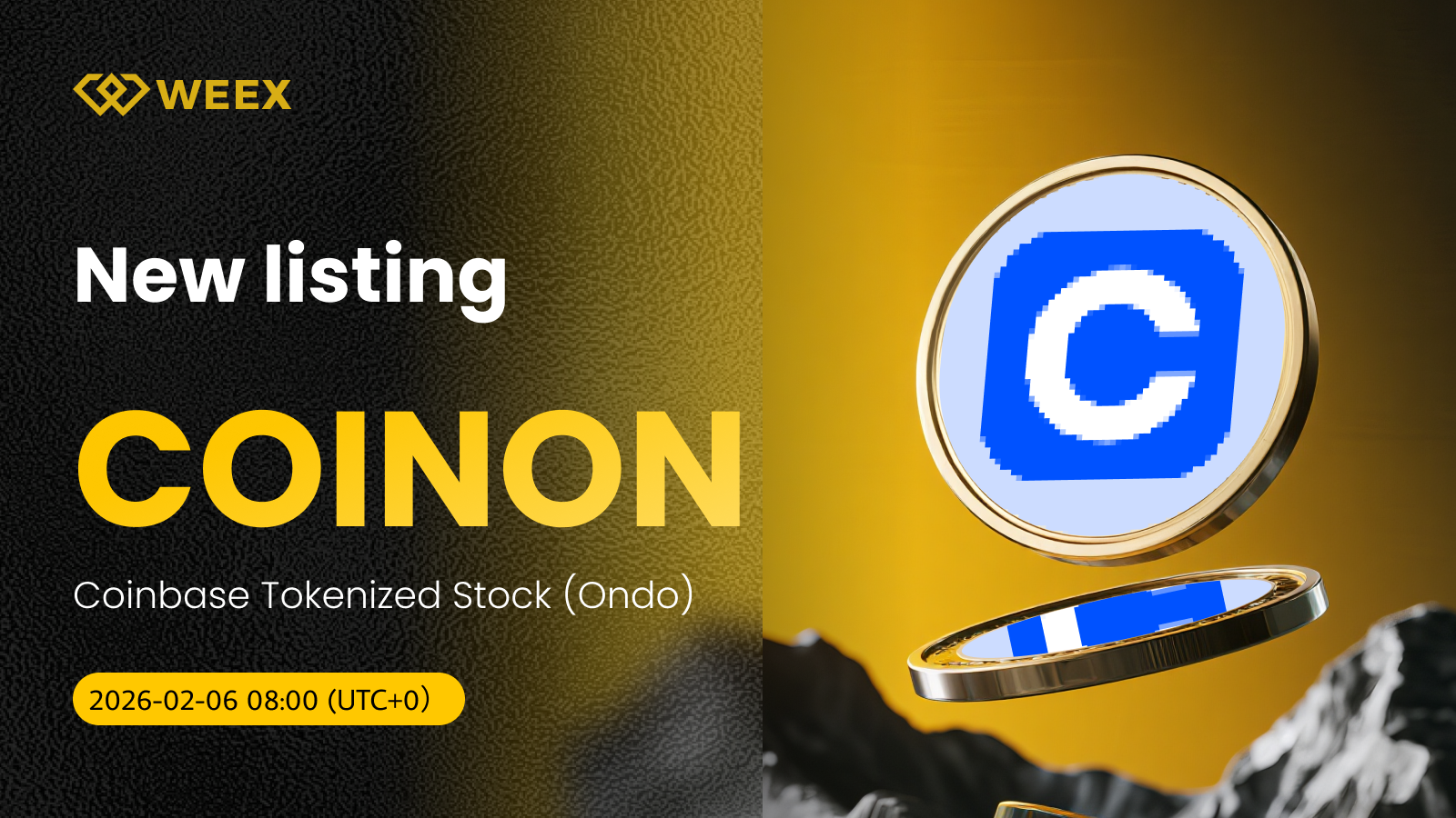 Coinbase Tokenized Stock (Ondo) (COINON) now available on WEEX!