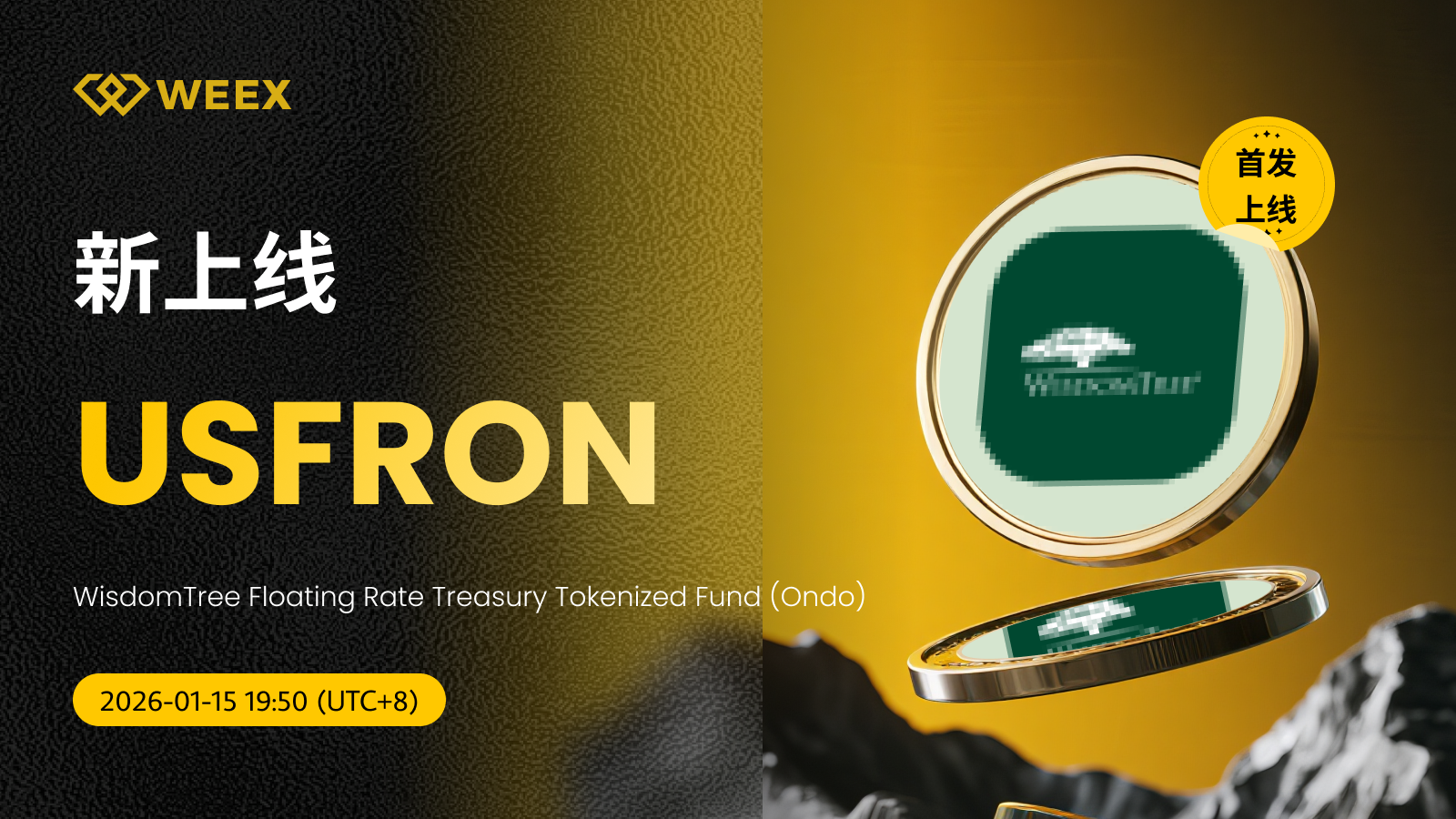 WisdomTree Floating Rate Treasury Tokenized Fund (Ondo) (USFRON) 现已上线WEEX!