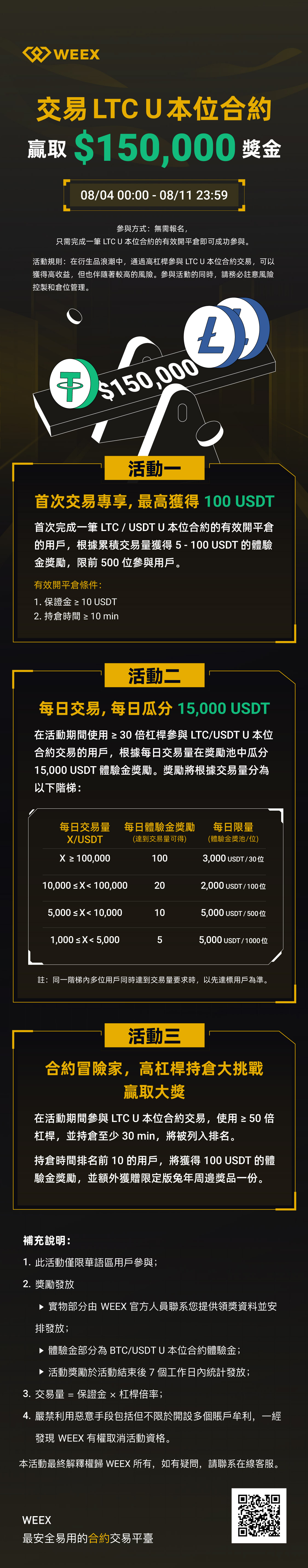 交易LTC U本位合約,欢迎新老用户参与,贏取$150,000獎金