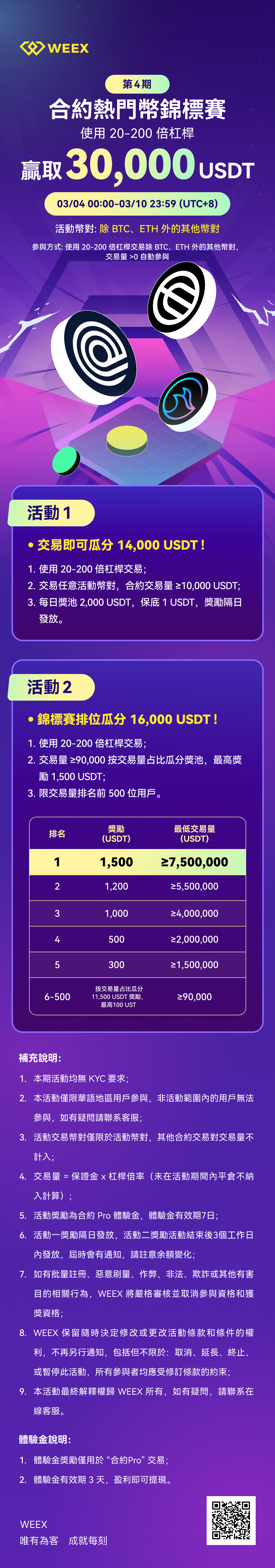 2.交易任意活動幣對,合約交易量≥10,000USDT;