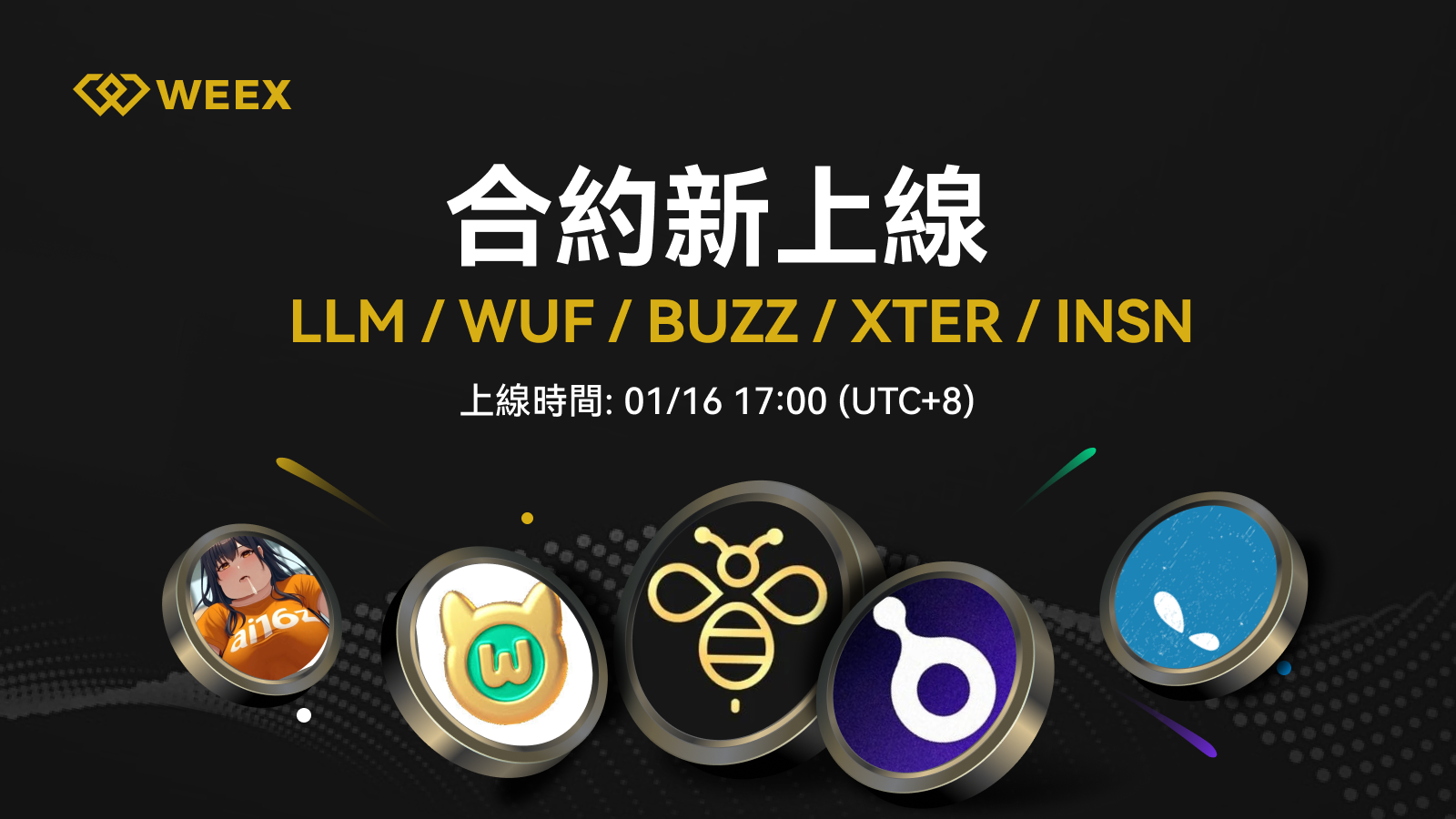WEEX合约将上线LLM、WUF、BUZZ、XTER、INSN U本位合约 - 1/16 17:00 UTC+8