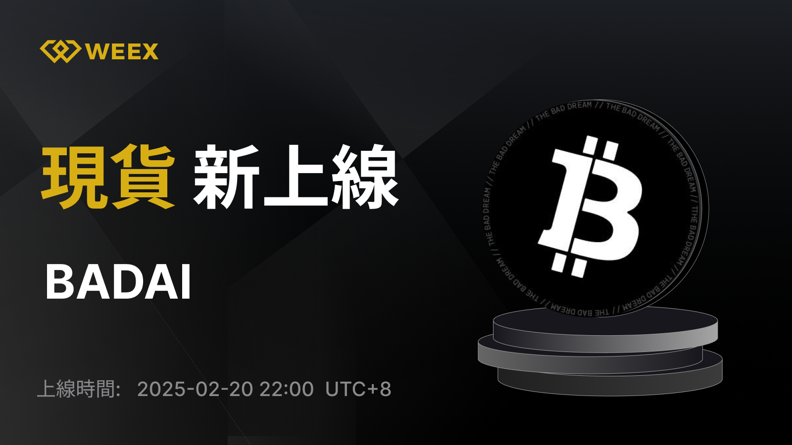 我們很榮幸地宣布,BADAI將在WEEX上線。詳情如下: