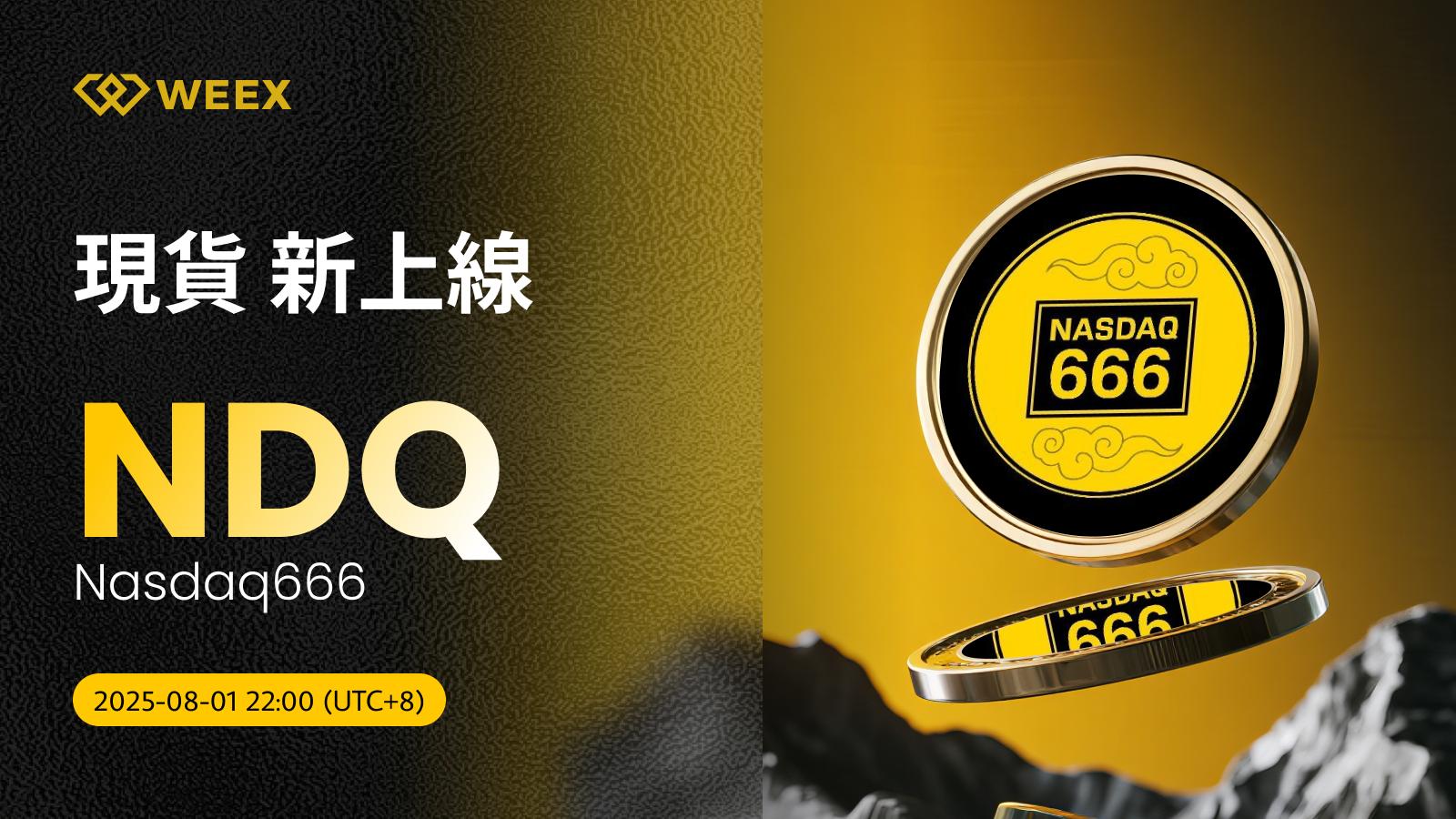 我們很高興地宣布Nasdaq666 (NDQ) 現已正式登陸WEEX現貨交易區!即日起,您可在WEEX平台進行 NDQ/USDT交易,詳情如下: